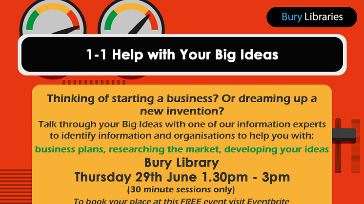 Budding entrepreneurs can talk through their Big Ideas with experts at Bury Library on Thursday 29 June.