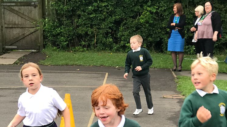 Picture: Children do the Daily Mile at Chantlers Primary School in Bury.