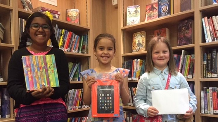 Picture: With their Summer Reading Challenge prizes are (from left) Sonal Mistry (aged 9), Elise Sinaga (7) and Ophelia Melbourne (6). Other prize winners were Erin Diggle, Adina Ross, Holly Baker and Alison Duxbury.