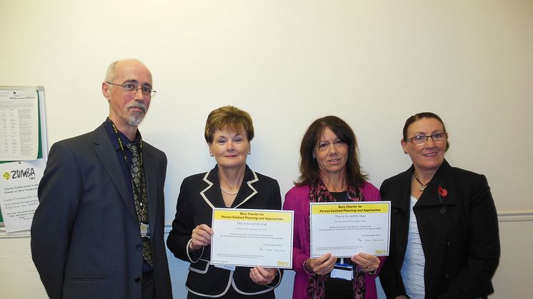 Picture attached: Signing up are (from left) Dave Howard, support planning and development officer; Marian Carroll, Pennine Acute Trust’s director of nursing; Dr Audrey Gibson, chair of Bury NHS Clinical Commissioning Group; and Pat Jones-Greenhalgh, executive director of adult care services.