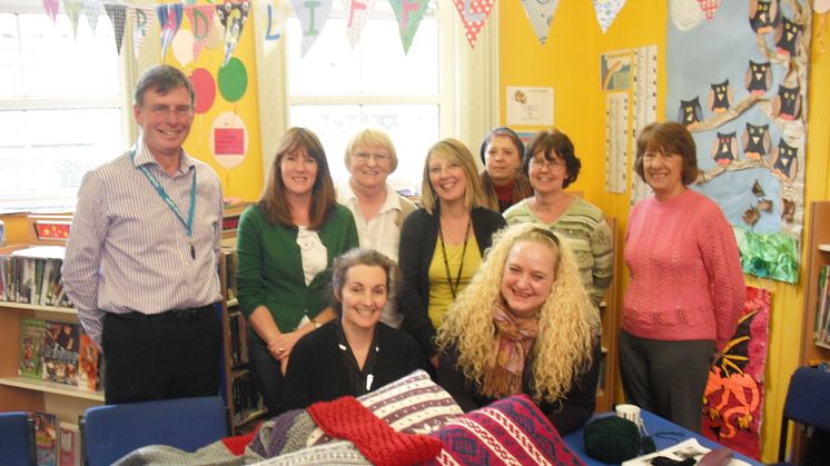 Picture attached: The Radcliffe Knitters meet Bury Hospice representatives (back, from left) James Arthur, Carolyn Lonsdale, Judith Keifer, Julie Taylor, Sabine Romana, Jill Talbot and Pat Holbrook, with (front, from left) Angie Anderson and Britt Thoreson.