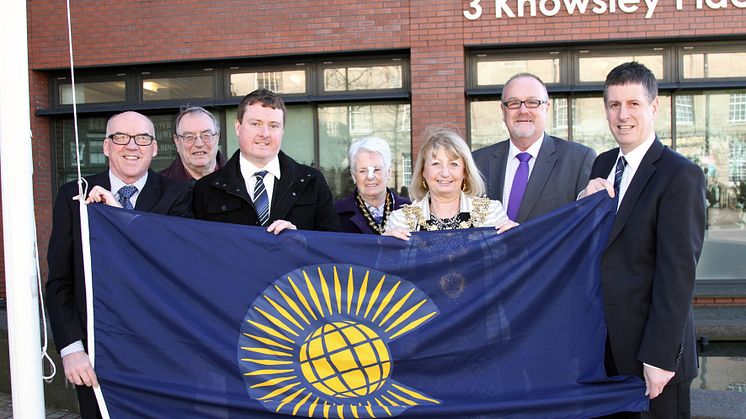 Picture attached: Raising the Commonwealth flag outside Knowsley Place are (from left) Mike Kelly, the council’s chief executive; Cllr John Smith, deputy council leader; Cllr Iain Gartside, leader of the Conservative group; Shirley Rabbitt, mayoress; Cllr Sharon Briggs, the Mayor of Bury; Cllr Mike Connolly, leader of the council; and Mike Owen, executive director of resources.