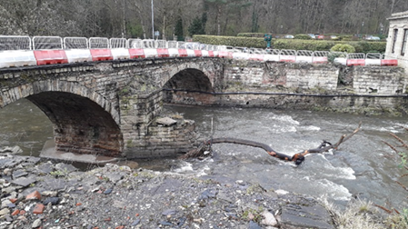 The bridge was extensively damaged by the Boxing Day floods of 2015, which caused the collapse of the Waterside Inn.
