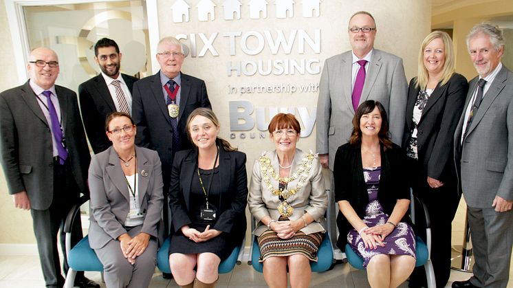 Picture attached: At the official opening of Red Bank are (back, from left) Mike Kelly, chief executive of Bury Council; Councillor Rishi Shori, cabinet member for adult care, health and well-being; the Mayor’s Consort, Mr Paul Grimshaw; Councillor Mike Connolly, leader of the council; Beverley Hopkinson, manager of the scheme; and Hugh Broadbent, chair of Six Town Housing board. At the front are (from left) Pat Jones-Greenhalgh, executive director of adult care services; Councillor Gill Campbell, cabinet member for neighbourhoods and regeneration; the Mayor of Bury, Councillor Joan Grimshaw; and Sharon McCambridge, chief executive of Six Town Housing.