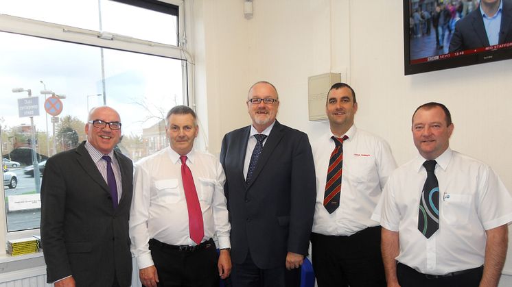 Picture attached: In the new coach drivers’ rest room are (from left) Mike Kelly, chief executive of Bury Council; Paul Sneyd, from George Edwards and Sons Coaches; Cllr Mike Connolly, leader of the council; Darren Beacher, of Jones Holidays; and Allan Lynch of Ulsterbus.