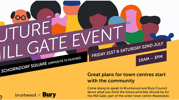 Bruntwood and Bury Council are inviting the local community from Bury and the surrounding areas to join a public engagement event to share their thoughts on the future of Mill Gate shopping centre.