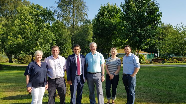 Picture: Radcliffe East councillors welcome the funding news at Close Park, which was flooded in 2015, with council leader Rishi Shori, cabinet member Alan Quinn and Bury South MP Ivan Lewis.