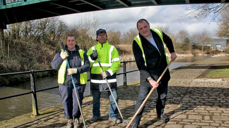 Picture attached: At the Radcliffe Canal towpath are (from left) Ally Taylor, volunteer Gary Mason from Radcliffe, and Cllr Tony Isherwood.