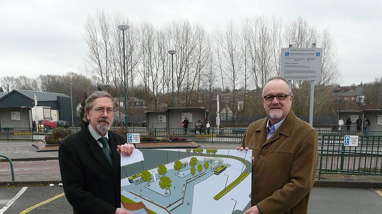 Picture: TfGMC Chair, Councillor Andrew Fender, and Leader of Bury Council, Councillor Mike Connolly, show the latest plans for the new Radcliffe bus station on the site that the station will be relocated to.