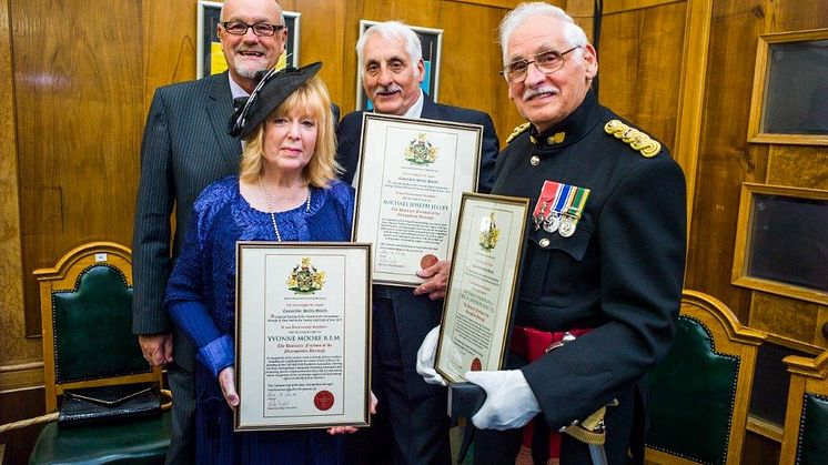 Boxing champ Amir Khan made a knockout appearance when three of Bury’s finest were given the Freedom of the Borough.