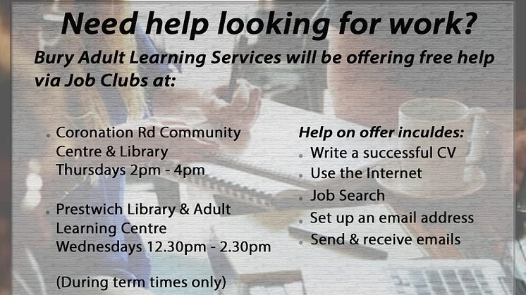 Bury Adult Learning Service is holding Job Clubs at local libraries for those looking to boost their employment chances.