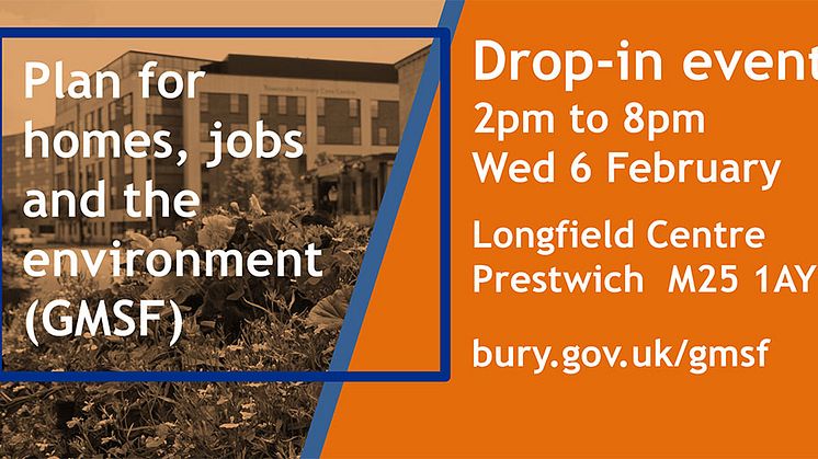The sixth and final Bury Greater Manchester Spatial Framework (GMSF) drop-in event is at the Elizabethan Suite, Bury, next Wednesday (March 6) from noon to 8pm.