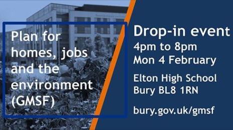 The second of our six Greater Manchester Spatial Framework drop-in sessions is on Monday (4 Feb) between 4pm and 8pm at Elton High School.
