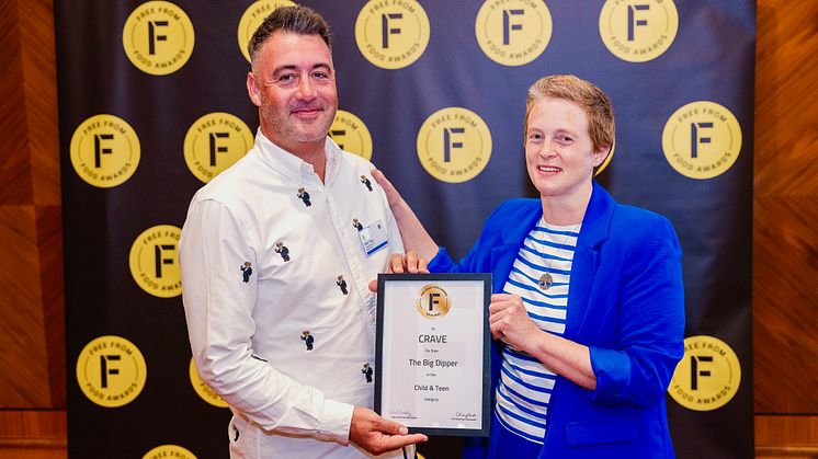 At the glamorous Free From Food Awards party in central London on Fri 21st June, those deliverers of disruption in the free from category, CRAVE, were crowned Free From Small Brand of the Year and their gluten and milk free snack, The Big Dipper, won the coveted title of Free From Food Product of the Year.