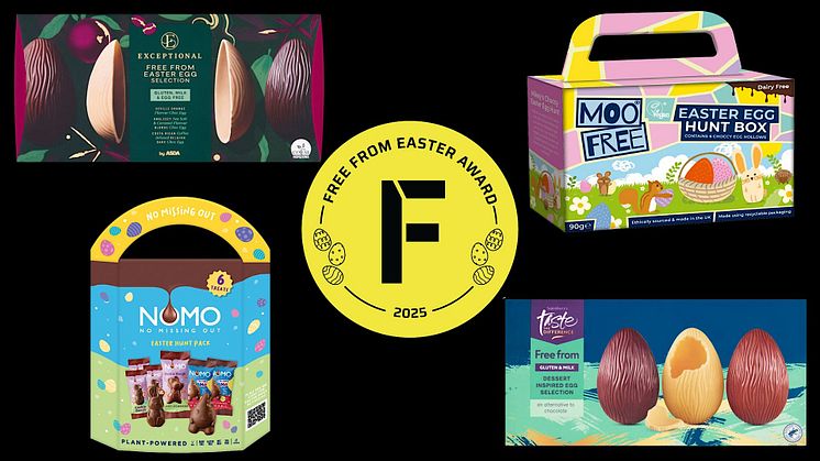 Seasonal products by Moo Free, Waitrose, Morrisons, Asda, Booja-Booja, Coop, M&S, NOMO, Sainsburys, The Real Yorkshire Pudding Co, Tesco, Ocado, Bubbling Stove, Chocolates by Design and Catherine’s Originals have triumphed in the Free From Easter Award 2025.