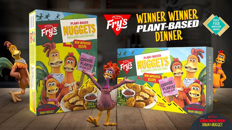 Fry’s, a global plant-based food brand that is part of LIVEKINDLY Collective, developed the innovative collaboration with Aardman and Netflix to launch their new special edition plant-based nuggets in celebration of the long-awaited Chicken Run: Dawn of the Nugget movie.