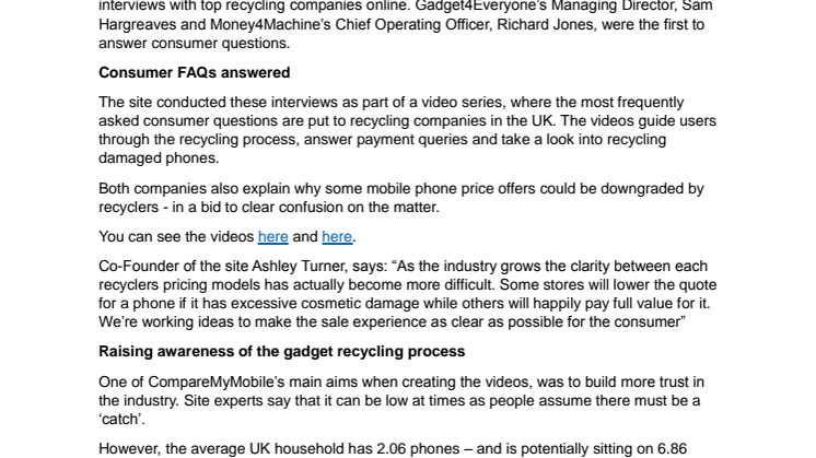 The site conducted these interviews as part of a video series, where the most frequently asked consumer questions are put to recycling companies in the UK. The videos guide users through the recycling process, answer payment queries and take a look into recycling damaged phones.
