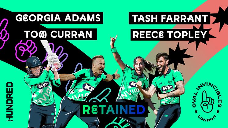 Oval Invincibles have today announced that Georgia Adams, Tom Curran, Tash Farrant, and Reece Topley will be part of their men’s and women’s squads for the first season of The Hundred in 2021.