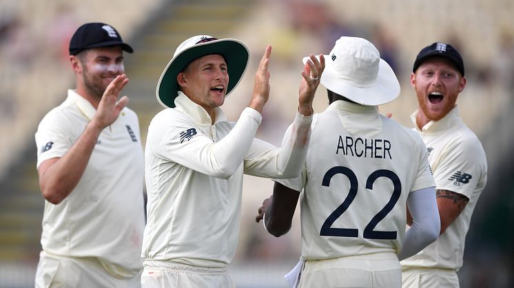 Joe Root (Yorkshire) (captain), Jofra Archer (Sussex), Moeen Ali (Worcestershire), James Anderson (Lancashire), Dom Bess (Yorkshire), Stuart Broad (Nottinghamshire), Rory Burns (Surrey), Jos Buttler (Lancashire), Zak Crawley (Kent), Ben Foakes (Surrey), Dan Lawrence (Essex), Jack Leach (Somerset), Dom Sibley (Warwickshire), Ben Stokes (Durham), Olly Stone (Warwickshire), Chris Woakes (Warwickshire).