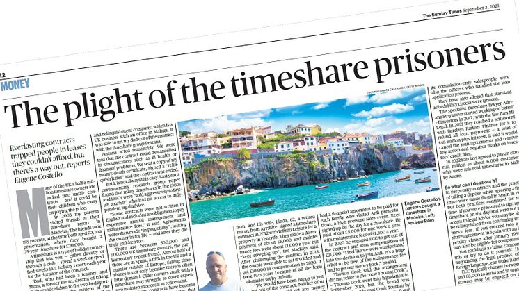 In September 2023, following many weeks of painstaking investigation, detailed research and assiduous fact checking, The Sunday Times published a hard hitting, half page article covering the outrageous behaviour of the European timeshare industry over the last quarter of a century.