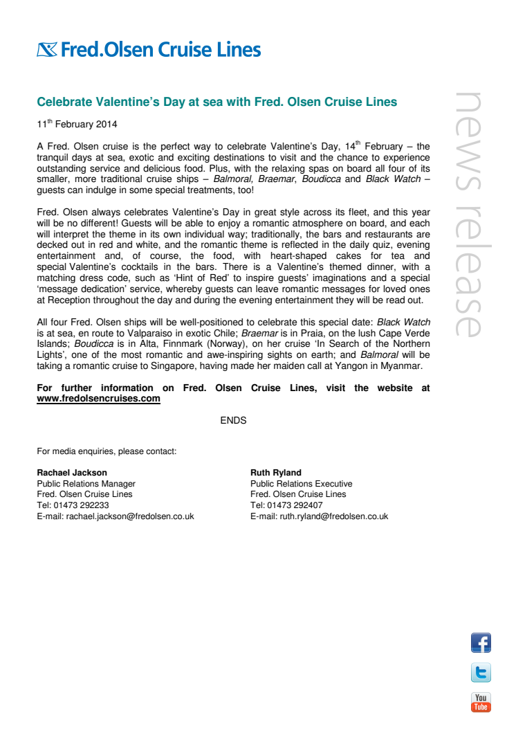 Celebrate Valentine’s Day at sea with Fred. Olsen Cruise Lines