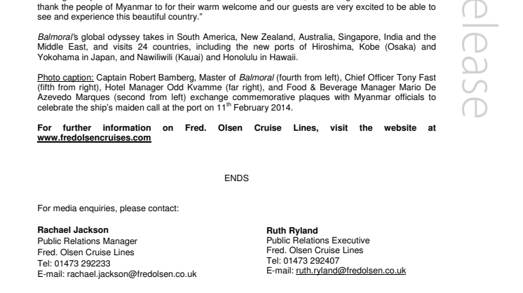 For further information on Fred. Olsen Cruise Lines, visit the website at www.fredolsencruises.com