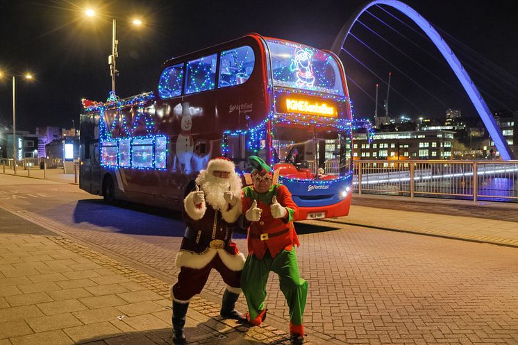 Santa and his elf: Steve Howe (Santa) and Mark Hodgson (Head Elf) volunteer on the Go North East Santa Bus every year.