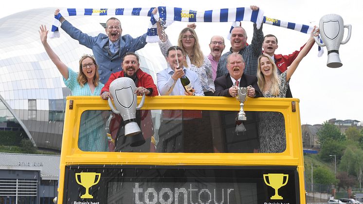 Go North East, the region’s leading bus company, is gearing up for the start of its hugely successful Toon Tour after taking the ‘UK’s Best Open Top Bus’ title. The team marked the occasion by inviting Alex Warner, Chief Executive of Great Scenic Journeys, to join them on a lap of honour around ‘The Toon’.