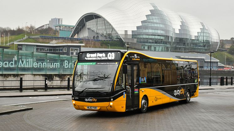 From today, bus operator Go North East is introducing an upgraded fleet of buses on its Quaylink Q3 service, relaunching it as ‘QuayCity’ and with a striking new black and yellow brand.