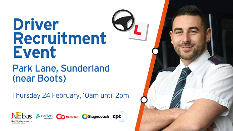 Go North East, Stagecoach and Arriva are joining forces as part of NEbus, the region’s bus operators’ association, to put on a bus driver recruitment event in Sunderland during the Confederation of Passenger Transport’s (CPT), the industry trade body, Bus and Coach Driver Recruitment Week.