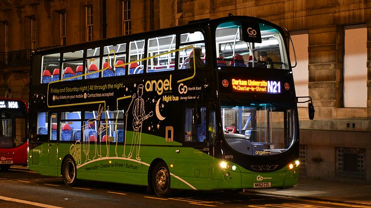 Thousands of passengers journeying between Newcastle, Sunderland and Durham after a late shift at work, social occasion or all-night studying session are benefiting from comfortable, convenient weekend travel with added peace of mind thanks to Go North East’s annual £10m investment in new vehicles including on its N21 and N56 night bus services.