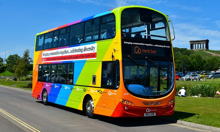 Go North East unveils multi-coloured bus to celebrate the work of its team in bringing communities together