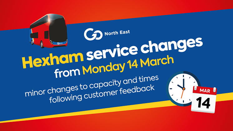 - Weekday journeys from Hexham at 5.50am, 6.50am and 7.50am will be retimed to run 10 minutes earlier.