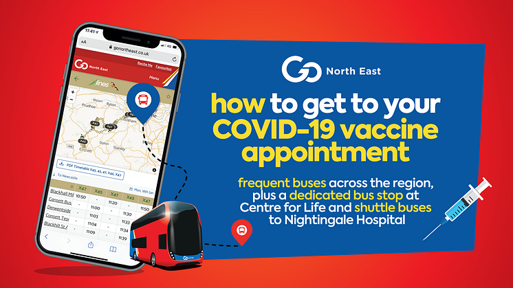 We run a wide range of frequent buses across the region, including three shuttle bus services which have improved access to the Nightingale Hospital vaccination centre. We've introduced a dedicated bus stop outside the Centre for Life vaccination centre in Newcastle.