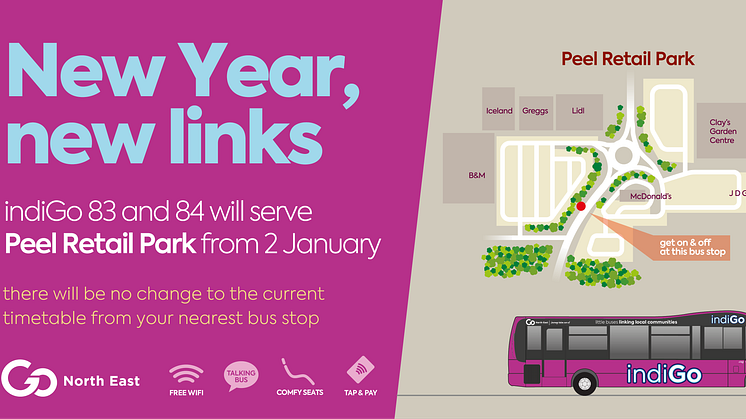 From 2 January, Go North East will be improving access to shops and facilities at Peel Retail Park in Washington.