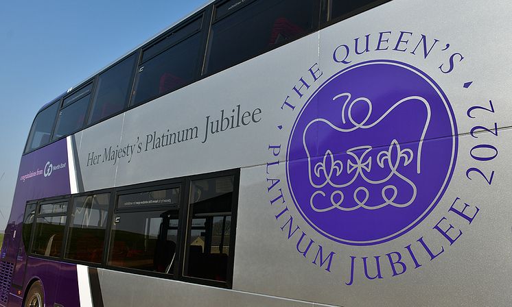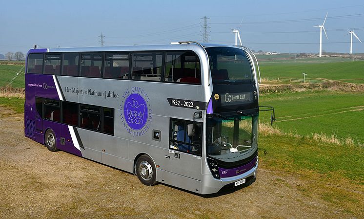 Go North East, the region’s largest bus operator, has repainted one of its modern, low-emission Euro 6, double-decker buses in a special livery to commemorate Her Majesty The Queen’s Platinum Jubilee year.