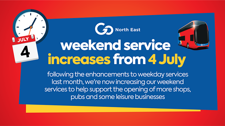 From Saturday 4 July, we’ll be increasing our weekend services, whilst also maintaining the early morning key worker journeys we’ve been running, to help support the opening of more shops, pubs and some leisure businesses.