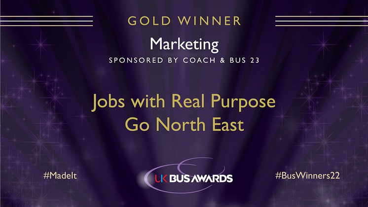 The region’s largest bus operator, Go North East, brought back the gold from the prestigious UK Bus Awards on Tuesday 15 November, being recognised for its marketing and communication efforts, and specifically its ‘Jobs with Real Purpose’ recruitment campaign.