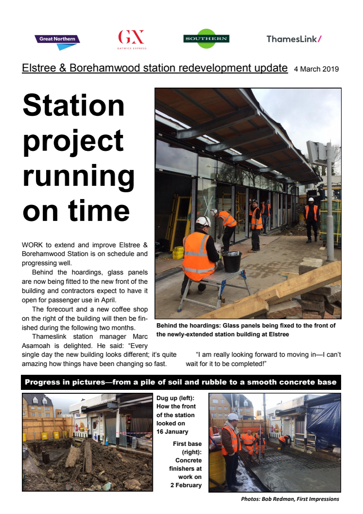 Update from the redevelopment and extension of Elstree & Borehamwood station