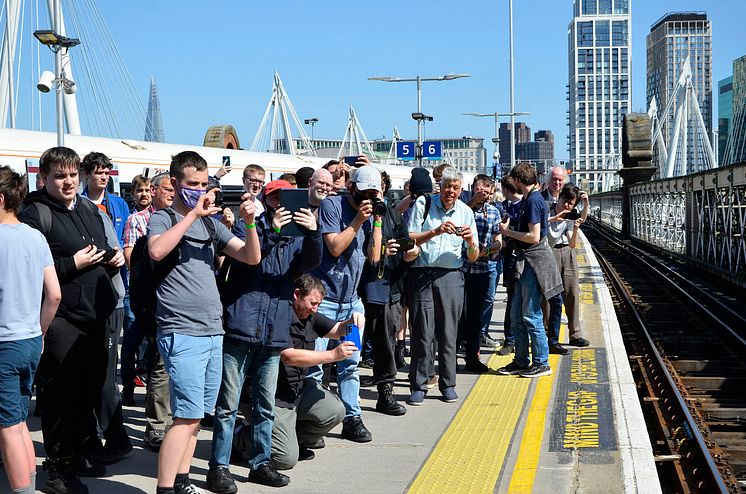 Train enthusiasts await the afternoon arrival at Charing Cross