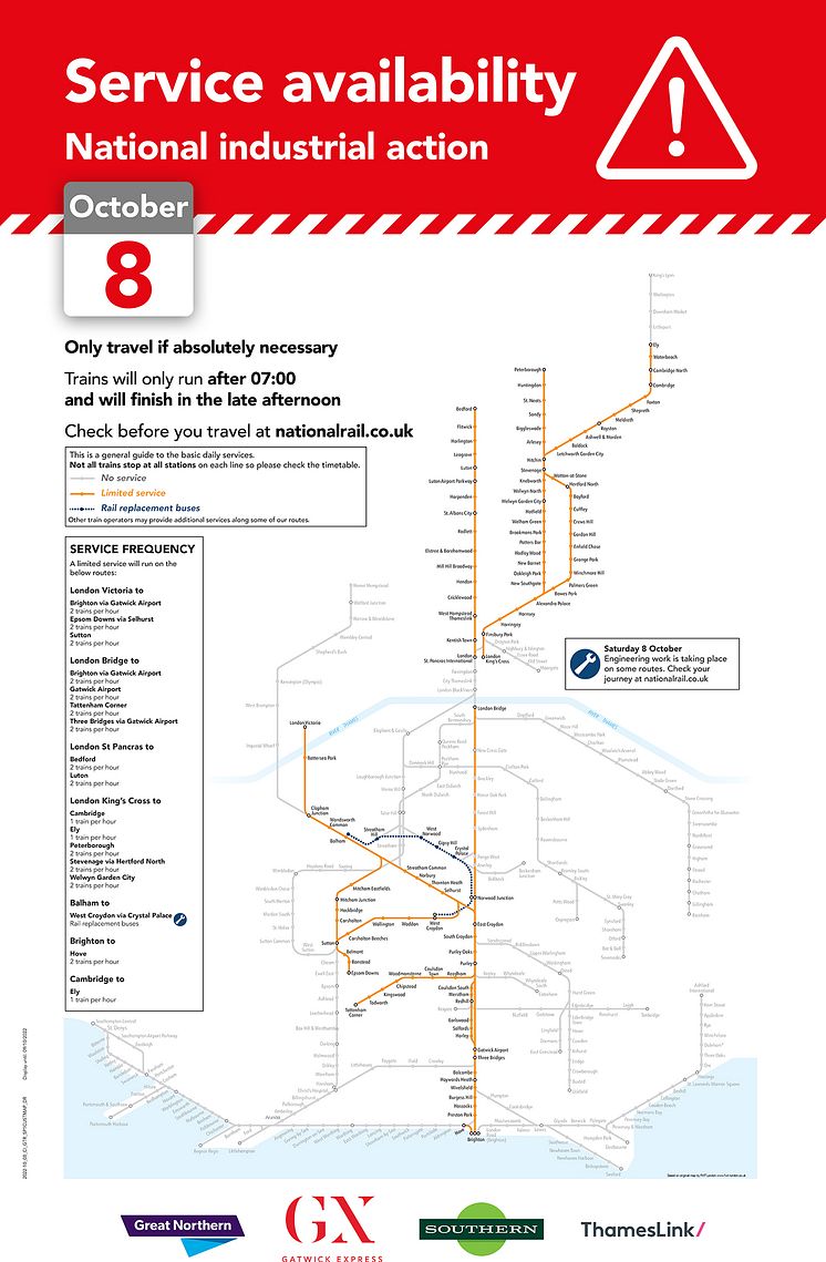 8 October RMT strike day service map