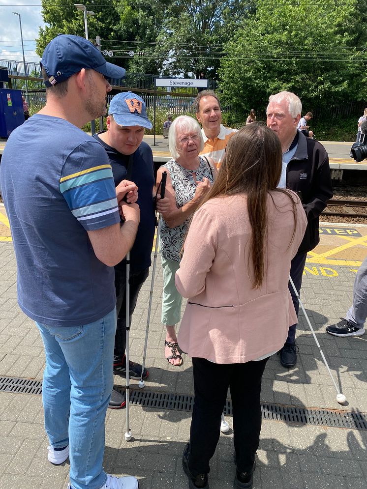Bedfordshire Sight Loss Council Volunteers discuss the new Aira app that Thameslink and Great Northern are trialling at Stevenage