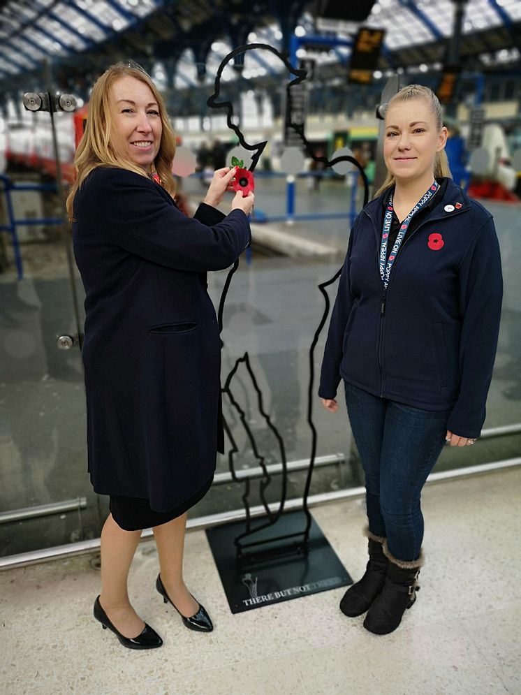 Southern and Gatwick Express Passenger Service Director and the Royal British Legion’s East Sussex Community Fundraiser Sonja Bateup commemorate the 100th anniversary of the Armistice at Brighton station