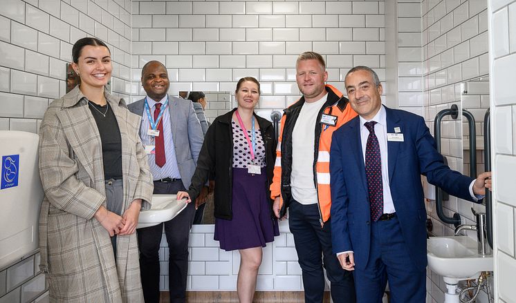 The toilet tea: Project Manager Annabel Jackson, Station Managers Ade Akinniyi and Daniela Banikova, contractor Justin West of West Services, and Accessibility Manager Antony Merlyn