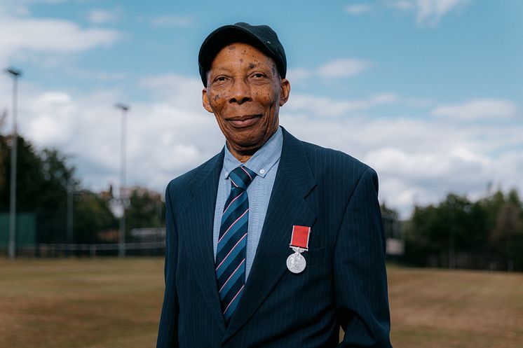 Siggy Cragwell, Thameslink's oldest employee aged 85, sports his British Empire Medal at his cricket club