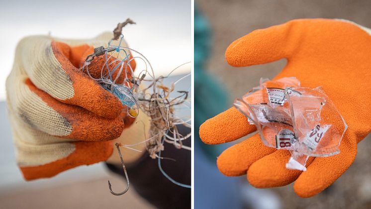Dangerous for humans and the environment: Fish hooks, nylon line and shards of broken beer bottles were found on a 100m stretch of Brighton beach