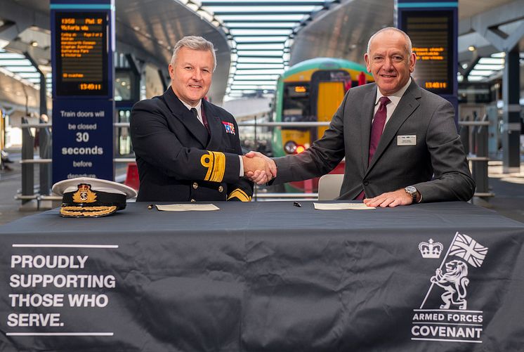 Pictured: Rear Admiral Phil Hally CB MBE (left) with Patrick Verwer, CEO of Govia Thameslink Railway (right)