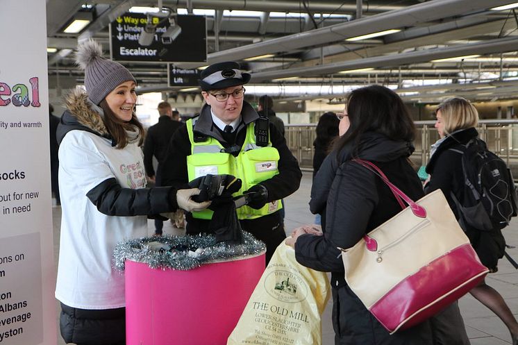 GTR staff were at London Blackfriars station collecting for the Great Sock Appeal