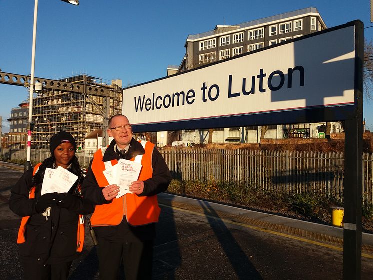 Luton station assistants Sandra and Tony supporting the Great Sock Appeal