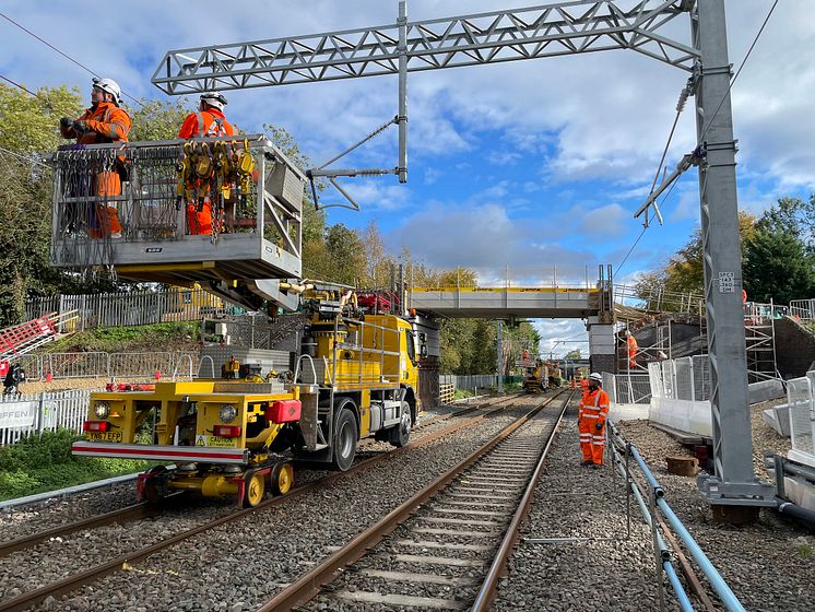 Network Rail engineers carry out wiring work on the Midland Main Line, Network Rail (1)